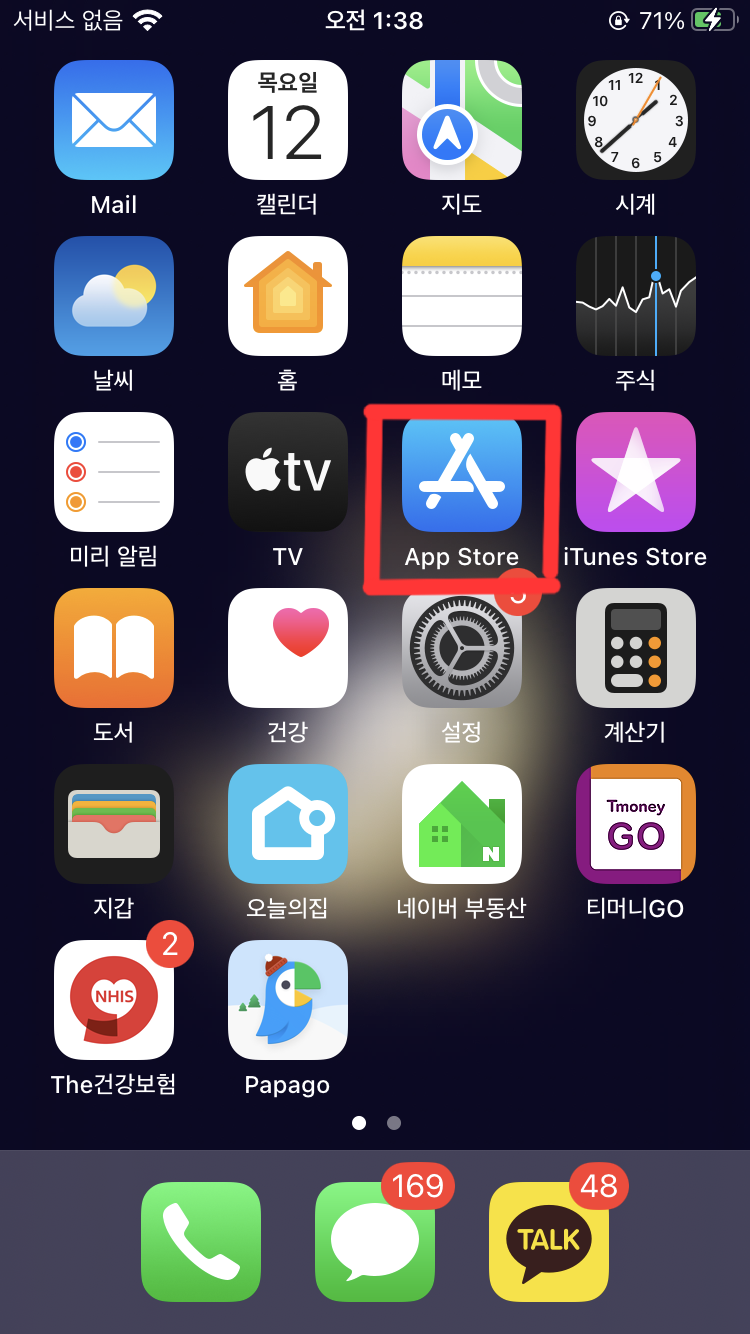iOS에 내장되어 있는 App Store를 클릭합니다.